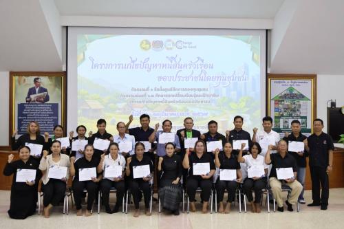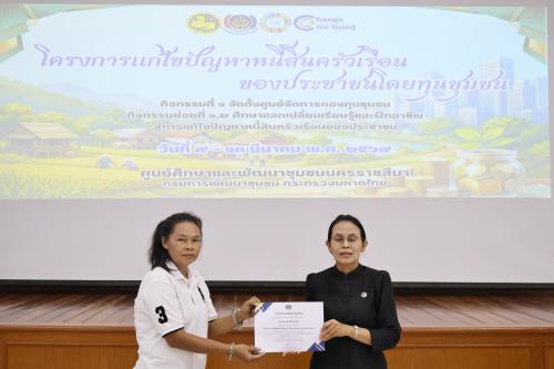 นางอรุณรัตน์ ชิงชนะ ผู้ตรวจราชการกรมการพัฒนาชุมชน เป็นประธานในพิธีเปิดโครงการแก้ไขปัญหาหนี้สินครัวเรือนของประชาชนโดยทุนชุมชน กิจกรรมย่อยที่ 2.1 “ศึกษาแลกเปลี่ยนเรียนรู้และฝึกอาชีพสู่การแก้ไขปัญหาหนี้สินครัวเรือน” ดำเนินการระหว่างวันที่ 9 – 13 มีนาคม 2569 (รวม 5 วัน) โดยมีกลุ่มเป้าหมายประกอบด้วย เจ้าหน้าที่พัฒนาชุมชนจังหวัดและตัวแทนครัวเรือนที่สมัครเข้าสู่กระบวนการส่งเสริมการแก้ไขปัญหาหนี้สินครัวเรือน รวมทั้งสิ้น 123 คน จากพื้นที่ 9 จังหวัด ได้แก่ จังหวัดนครราชสีมา จังหวัดมหาสารคาม จังหวัดชัยภูมิ จังหวัดสุรินทร์ จังหวัดร้อยเอ็ด จังหวัดอำนาจเจริญ จังหวัดศรีสะเกษ จังหวัดยโสธร และ จังหวัดอุบลราชธานี